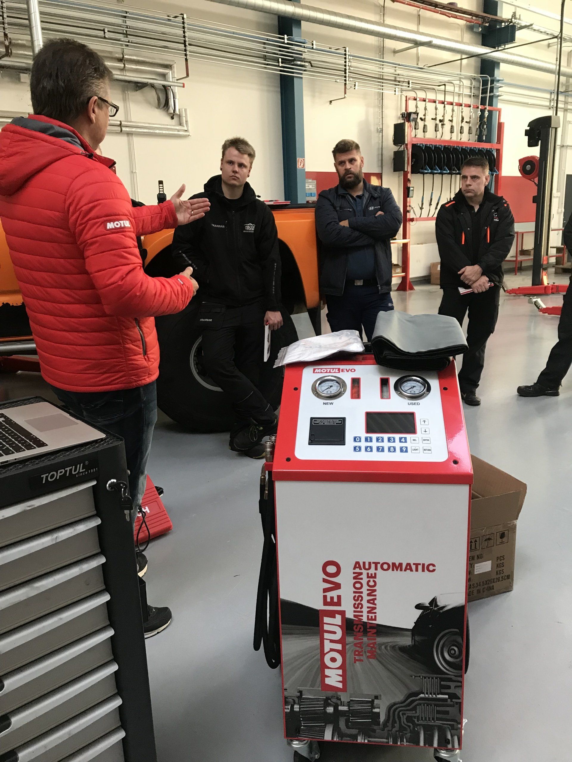 Motul Evo er sérhæfð tækni til að skipta um olíu á sjálfskiptingum. Búnaðurinn virkar þannig að skipt er um alla olíuna á öllu kerfinu og það hreinsað. Þetta getur haft mikil áhrif á endingu skiptingarinnar, eyðslu og mengun.